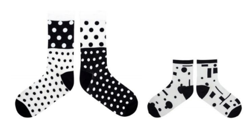 現代主義 - 將襪身當畫布,以無規律的線條、圓點元素揮灑創意,誰說襪子不能是一幅現代主義作品。