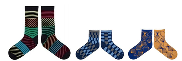 除了有趣、充滿故事性的Story系列,TwinSocks的Pattern系列則適於日常生活穿搭,顛覆線條、幾何、格紋等經典元素,變化出與眾不同的視覺巧思。無論是圓點、碎花、霓虹燈、線條組成的貝殼紋,將平面圖案變立體,就是要激發出視覺感官的變化!