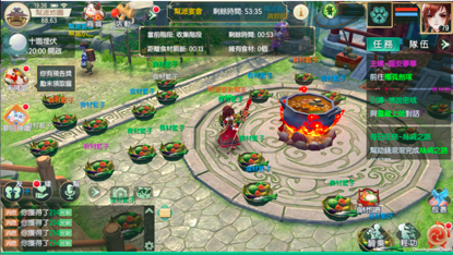 幫派宴會於每週三、週日19:30開啟,分爲收集食材和烹飪食材兩個階段,且兩階段交替進行。收集階段玩家需在幫派領地中拾取散落的不同品級食材;於烹飪階段需前往幫派大厨處放入食材烹飪料理。最後將做好的料理提交給幫派小二,可獲得相應獎勵。