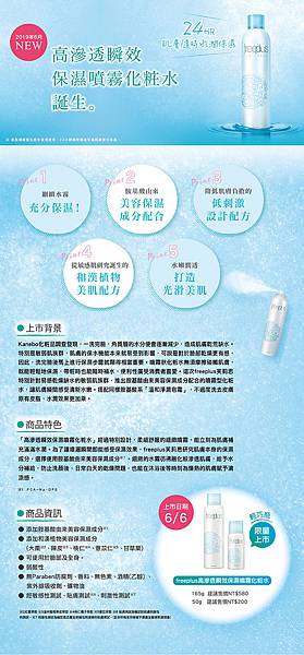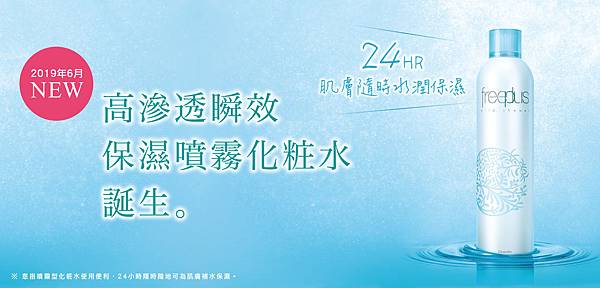 Kanebo化粧品旗下開架醫美品牌『freeplus芙莉思』將於2019年6月全新推出噴霧型化粧水,柔細舒服的細緻噴霧,「高滲透瞬效保濕噴霧化粧水」能立即為肌膚補充滿滿水潤。