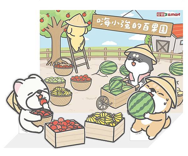 愛買首度與台灣LINE貼圖暢銷畫家「嗨小強」、「大頭兒」合作,在賣場內設有『嗨小強的百果園』、『跟著大頭兒當小農』一起愛台灣主題區,消費者合照上傳FaceBook活動頁參加抽獎,就有機會獲得市價2680元「歌林拉霸隨行果汁機」。(活動網址:https://www.facebook.com/events/294143651518598/)