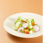 看似簡單的煙燻鮭魚可是一道功夫菜!主廚以煙燻槍將鮭魚燻上15分鐘,再待它冷卻30分鐘,以此重複3次以創造濃郁的煙燻味,搭配瑞可達起司以及清爽的蔬果如黃瓜、櫻桃蘿蔔和酪梨,以平衡煙燻鮭魚和起司風味。