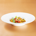 主廚以油封番茄的技術將番茄、羅勒和檸檬加入油中以烤箱進行油封,將其滋味鎖入番茄中。接著將煎過的茄子,油封番茄和義大利麵混合在一起撒上起司粉和檸檬屑。即可品到濃郁的蔬菜香氣又不膩口。是主廚推薦佳餚之一!