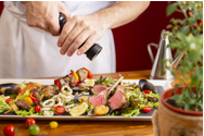 所謂地中海式料理即一種健康養生的飲食模式,強調自然、新鮮、美味,因此主廚以紙包烤鱸魚的方式搭配黑胡椒、橄欖油、馬鈴薯和番茄烘烤。呈盤上桌時,再將外層的紙撕開取出魚骨。如此的料理方式保留了食材原味,將鱸魚的鮮甜完整呈現,因此主廚嚴選新鮮食材更顯重要!