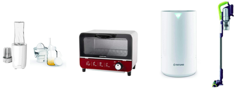 眾多實用家電,折扣下殺超低價!沒買到絕對扼腕!大同輕享飲品機+配件包(TJC-P150U+TJC-CJ150),優惠價1,290元,外型時尚、一機多功能,可輕鬆完成榨汁、沖茶、泡咖啡等多用途;大同6L電烤箱(TOT-605A),超低優惠價只要499元,數量有限售完為止。大同清淨機(TACR-1700PUC),優惠價3,990元,可過濾PM2.5、紫外線殺菌,加贈HEPA濾網一片(F1700PUC);夏普羽量級無線快充吸塵器(EC-A1RTW-Y),離心式氣旋強勁吸塵,碳纖維超輕羽量級設計,全機重約1.5kg,單手可持輕巧吸塵不費力,贈送專用電池一個、時尚保溫瓶(TVB-470CG)。