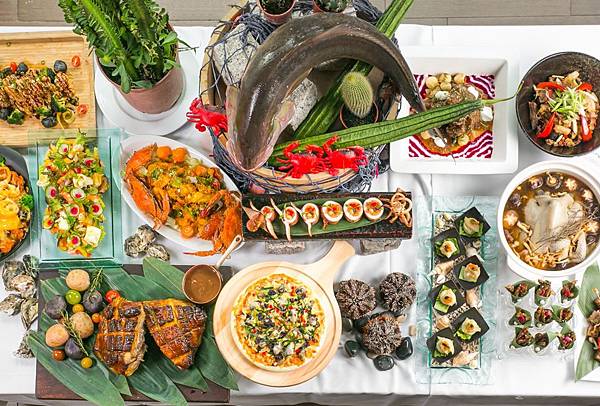 一樓雨林餐廳現正上檔「海派澎湖絕鮮饗宴」,採用澎湖當地食材搭配主廚精湛手藝,活動期間享澎湖當地各式鮮味佳餚、生啤酒無限暢飲及肥美生蠔無限吃,還可用超優惠加購價NT$99享鮮嫩鮑魚料理一份或加價NT$150品嚐現剖海膽一顆的鮮滋味。除了各式鮮美佳餚外,還包括爐烤美國頂級牛排、石鮔干燉豬腳、仙人掌燉羊膝、綜合生魚片、澎湖角螺、藍蟹等,壽司手卷區提供炙燒鮭魚握壽司、澎湖鮮魷鐵砲捲等綜合壽司盤,還有鮮蝦、蝦卵等手卷;中西式繽紛主食熱菜及開胃冷盤、鮮蔬沙拉吧、精選湯品等,現煮區提供澎湖小管麵線、澎湖海鮮漁港麵,還有時令鮮果、西班牙La Menorquina冰淇淋、多款手工甜點、現榨蔬果汁、生啤酒、飲品、咖啡及茶等精緻餐飲。