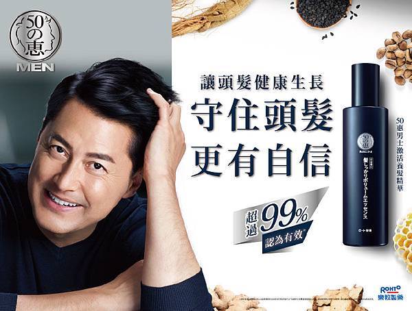 50惠男士更特別力邀港片中常常飾演帥氣警司的「王敏德」為品牌代言,擁有一頭濃密感頭髮的他,絲毫看不出歲月的痕跡,帥氣指數依舊逼人,全是因為及早開始重視頭皮養護,才能擁有一頭茂密烏黑的豐厚感頭髮。