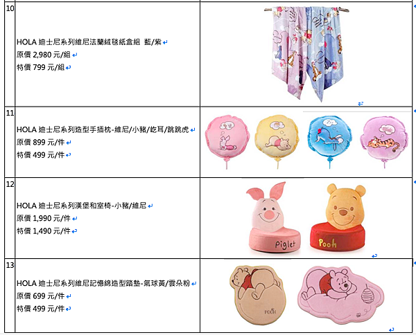 HOLA商品企劃部協理蔡姍吟表示,小熊維尼的愛好者年齡層分佈廣,不僅小朋友愛不釋手,大人也難以招架維尼的魅力,因此,這波聯名商品專為成人設計,成熟中不失童趣,在減壓的鵝黃、淡粉雙主色調下,藉由造型展現商品創意,如:氣球造型手插枕、側邊連帶設計小巧書籤的書本造型抱枕、兼具收納功用的組合式玩偶等,療癒程度直叫人一眼定睛,只想即刻擁有。