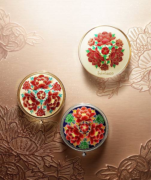 今年,雪花秀邀請韓國七寶搪瓷工藝大師Noh, yong sook,以皇室畫作題材「岩石牡丹圖Seokmorando」為靈感,象徵財富與長壽,透過數十道繁複工序,製作璀璨華美的七寶搪瓷,打造2019節慶限量彩妝系列。花釉香粧盒—2019限量版的豔紅牡丹綻放於香檳金底色之上,卻顯嬌柔,盡是奢華高貴。花釉彩妍盒—2019限量版綻放粉色花束,襯以典雅的青瓷藍,展現牡丹的優雅與活力。粉紅色與粉綠色的外盒包裝,精心描繪牡丹與奇石,祈求永恆的財富與榮耀。臻顏逆齡氣墊粉霜─2019限量版描繪經典朝鮮皇室圖騰,以香檳金與艷紅牡丹對比,詮釋奢華限定。