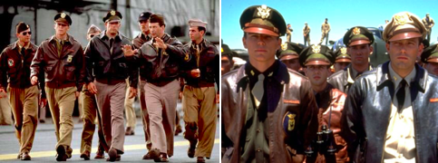 喜愛美國軍事電影的影迷不難發現一個黃金定律:男主角扮演丰采迷人的帥氣飛官,穿著硬挺的深咖啡色飛行皮衣登場,臉上一定戴著細金絲框的雷朋墨鏡,不時的關注手上指針霸氣的飛行腕錶,瀟灑地走出酒吧,神氣地發動停在街邊的豪邁重機。當影迷還在聚焦陶醉在完美的一幕時,男主角早已伴隨著呼嘯的引擎聲浪而去,留下令人難以忘懷的銀幕經典,成就了定義永恆的豪邁男神典範,同時留下了令人爭相仿效的軍風時尚本格派扮相。