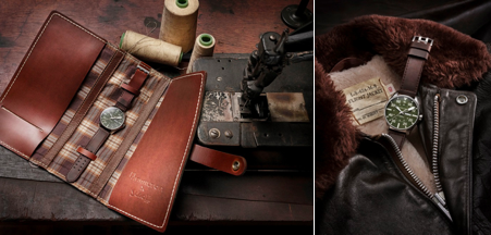 在Schott NYC的建議下,本次聯名系列錶帶使用製造飛行夾克的特殊皮革來匹配漢米爾頓的頂尖工藝。Schott NYC特別挑選的頂級粒面全苯胺皮革,使用聯邦標準軍用大地色30099 Earth Brown,忠實還原二戰時期的經典面容。全苯胺皮革擁有質輕、堅固、結實的特性,會隨著佩戴者的使用習慣,產生自然的老化與型變,如同皮衣越穿越合身的養革特性與逸趣,為配戴者帶來累積記憶的美好變「革」。