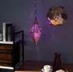 特力屋星星USB吊燈設計幾何造型與藤編工藝兩款風格,包括雕琢鏤空圖騰的金屬立面體,以及藤、棉繩編織工藝的藤球,如藝術品一般呈現強烈的異國風情,內部選以黃、白、紫、綠不同光色LED燈串發光,密集紛呈的光點透過燈罩鏤空的圖紋,映照出斑斕而奇幻的光影,即使單一盞燈也能形塑鮮明風格。