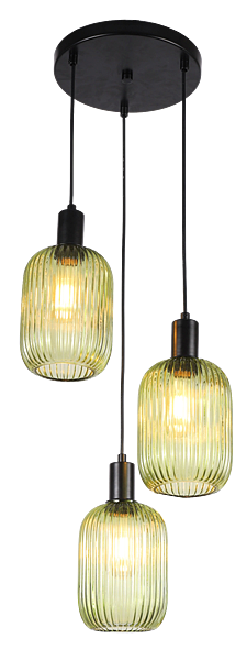 安柏現代琥珀玻璃吊燈系列具圓柱與橢圓兩種外型,在晶透的玻璃表面壓塑出不規則的曲面波紋,光線在燈罩表面映射出晶瑩的光澤。格瑞工業風系列則以復古香水瓶身概念,草綠色的玻璃燈罩表面加以摺痕設計,賦予光影舊時光的質感。