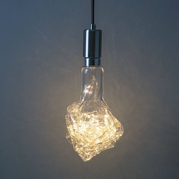 跳脫單純提供光源的角色,特力屋造型燈泡系列將外殼改造為螺旋、橄欖、水滴甚至不規則擠壓型態,並將燈絲改換為無數多點發光的LED燈串,創造璀璨繽紛效果,讓燈泡無須燈罩包裝,只要接上吊燈線就能秒變風格燈飾。