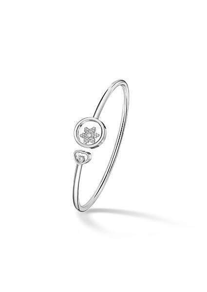 18K白金手環鑲嵌1顆滑動鑽石與1顆滑動雪花綴飾,總重0.13克拉。