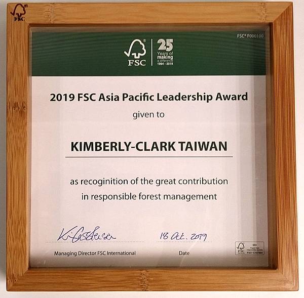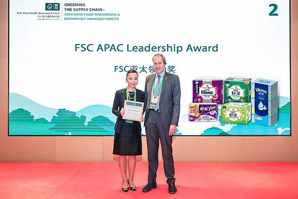 論壇上,FSC全球總裁Kim Carstensen並首度頒發「FSC亞太領袖獎」予致力推廣FSC驗證商品與大眾綠色消費意識之企業,金百利克拉克台灣分公司與旗下舒潔品牌長期投入FSC大眾教育宣導,提升民眾對FSC標章的認知,成為獲獎的八家企業之一。