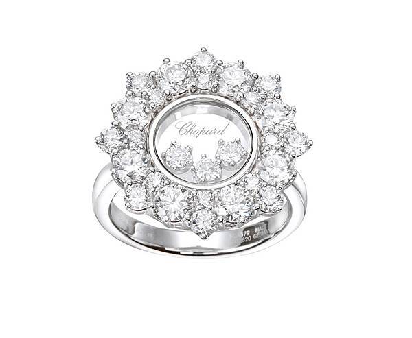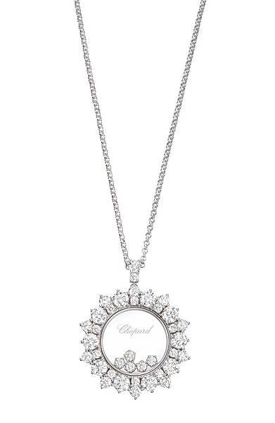 當歡樂精靈降落凡間,幻化為蕭邦旗下最負盛名的Happy Diamonds系列。這一傳奇系列自問市即憑藉其翩然起舞的滑動鑽石觸動人心。蕭邦更在這一指標性的系列商品中不斷注入鼓舞人心的積極情緒,將其打造為渲染快樂與大膽創新的正面能量。Happy Diamonds 系列全新項鍊與戒指,如花般的造型,雪白無瑕的18K白金明亮式切割鑽石項鍊與戒指,環繞珠寶的爪鑲鑽石,完美展現蕭邦匠心獨具的鑽石切割工藝。擁簇曼妙的5顆圓形明亮式切割滑動鑽石,於兩層藍寶石水晶玻璃間自由飛舞。