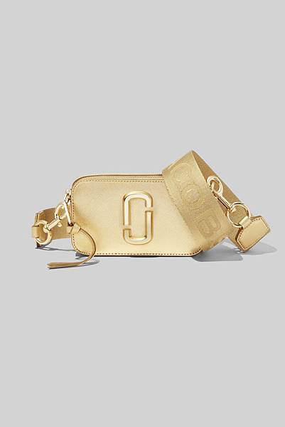 Marc Jacobs潮流的Snapshot相機包換上最夢幻的顏色—彩虹獨角獸,灰黑金屬Double-J搭配多彩絢麗的壓紋牛皮,以及同樣幻彩色系的吉他寬揹帶,個性的Snapshot相機包多了點甜美少女氣息。除了肩揹相機包款式,也提供短夾和票卡零錢包的款式,萬元以下輕鬆擁有風靡全球的Double-J系列商品。包身和寬揹帶全都是金色的Snapshot相機包,也是非常適合聖誕節氛圍的推薦包款。