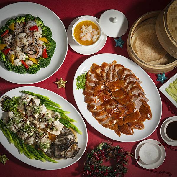 香宮粵菜餐廳擁有多間私人包廂,最適合歲末闔家團圓歡聚,主廚精選多樣招牌菜式推出聖誕與新年桌菜,包含香宮最聞名的烤鴨、乳豬錦繡大拼盤、香橙焗排骨拼松露捲、紅棗雲耳蒸石斑等,道地粵式風味,令人垂涎三尺!12月20日至25日以及12月31日限定供應,每桌10位22,888元 。