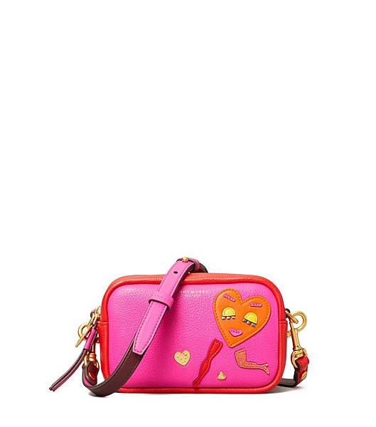 輕巧的Kira相機包是Tory Burch今年最受歡迎的包款,小巧俏麗的包型,搭配錯綜斜紋縫線小羊皮,鑲嵌上精緻的金色雙T Logo,展現優雅名媛風範。貼心的Tory Burch將金色鍊帶上銜接同色系的小羊皮肩帶,讓配戴時更加舒適;Holiday系列更獻上兩款新色—搶眼的「亮桃粉」和「三色條紋款」。擁有獨特魅力的亮桃紅,Tory暱稱這個色號為Crazy Pink(迷戀粉),一抹桃紅成為眾人迷戀的焦點;運用暖色調的蘋果紅、迷戀粉與品牌代表色-時尚橘排列而成的三色條紋款,洋溢俏皮活潑的氣息。Perry 迷你肩揹包在聖誕佳節則換上亮麗的”迷戀粉”,以童趣可愛的皮革拼貼裝飾,更顯新穎年輕。實用ELLA托特包,大容量設計是上班或出遊都適合的單品,柔美的石英粉絲緞面料,加上細緻的縫線營造出輕盈的空氣感,優雅中又帶有悠閒的氛圍。