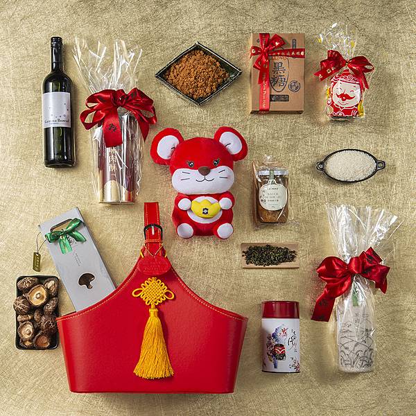 此外,年節不可少的伴手禮也幫您準備好了!因應喜氣金鼠年的到來,香格里拉台北遠東國際大飯店推出「心有所鼠」、「金玉滿堂」、「鼠來報吉祥」和「福星高照」四款精緻禮籃,皮革質感的喜慶包裝,搭配頂級紅酒、凍頂烏龍茶及廣式臘腸等各式年味禮品,讓您表心意面子裡子都增光!另有10款應景禮品包含「金牌XO醬」(690元)、「綜合年糕」(688元,含馬蹄糕、傳統年糕、蘿蔔糕、芋頭糕)、「燕窩財神元寶」(1,388元)等,提貨時間自2020年1月5日起,訂購及詳情請洽(02) 7700-3155 或親臨飯店一樓 The Cake Room選購。
