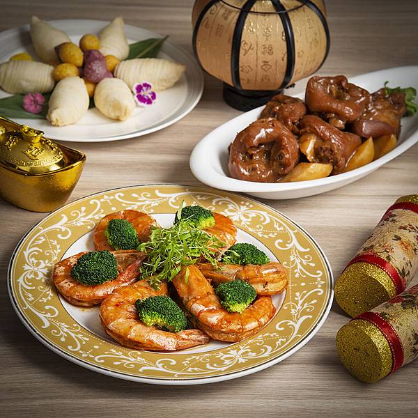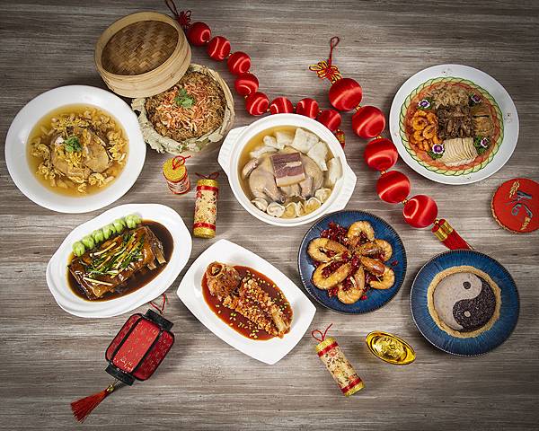 由港籍中餐行政主廚何競業領軍,廚藝精湛的料理團隊榮獲2019年米其林台北指南餐盤推薦,推出的年菜套餐更是躍升到全新等級!鮑魚極品港式佛跳牆以芋頭、排骨、鳥蛋、栗子、魚皮絲等各式嚴選食材,配以香宮秘製湯頭燉煮2小時以上而成,口感香滑順口;蠔皇六頭湯鮑則以蠔油、老母雞湯及金華火腿為賦味亮點,將六頭鮑魚入鍋煨煮4小時以上而得,口口都能嘗到海陸融揉的美味驚豔。而經典的港式點心蘿蔔絲酥餅,外型如元寶般富貴討喜,餡料滿是多汁可口的白蘿蔔絲,香甜可口,絕對令人吮指回味!