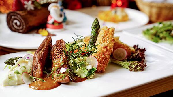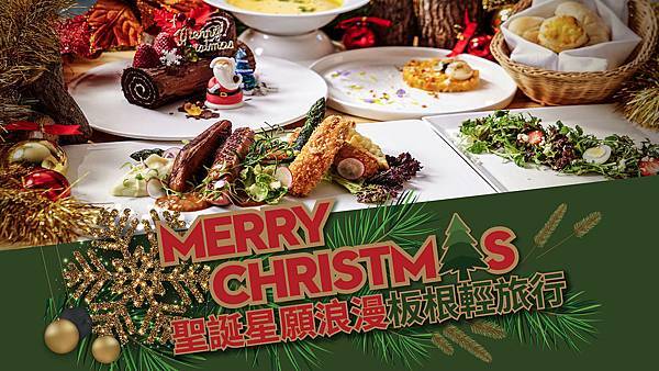 聖誕星願套餐由大板根森林溫泉酒店太子西餐廳供應,可品嚐香煎櫻桃鴨胸佐波特醬/酥炸魚柳薯條、油封干貝南瓜燉飯、焦化胡蘿蔔洋芋奶油濃湯、聖誕限定初雪樹幹年輪蛋糕等豐富料理,搭配波特璀璨金瓶氣泡葡萄酒,與身邊的伴侶一起舉杯,在浪漫的氣氛中度過聖誕佳節。於活動期間內享用聖誕套餐(需於三天前訂購)。