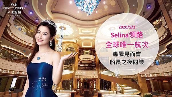 在Selina任家萱星光加持下,5月2日至5月5日 全球唯一Selina領路航次也開出亮眼銷售成績,超過七成艙房皆已完售。想與Selina 共遊盛世公主號嗎?在此航次上不僅有粉絲見面會,更可以與Selina一同參加公主遊輪最經典獨特的船長之夜,感受不同氛圍的船長香檳派對,有興趣的賓客別錯過這趟全球唯一主題航次,趕緊搶先預購吧!