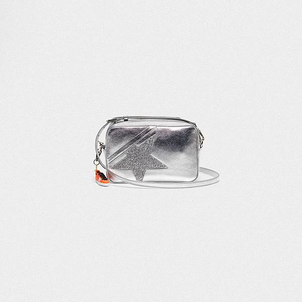 方正的外型經典簡潔,品牌的標幟-星星圖紋壓印在皮革上,並飾以閃亮的精巧水晶點綴,內裡有一隔層可放置手機,每個包還附有迷你球鞋吊飾小巧可愛,帶有紋路仿舊的皮革展現復古風範。