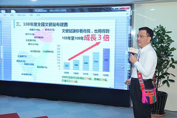 原住民族委員會於今(30)日辦理「108年文化健康站成果發表會」,由夷將Icyang主委主持,衛福部代表也一起出席記者會,並邀請新北市汐止文健站長者展現活力健康操,現場展示文健站服務長者生活點滴及硬體空間改善成果,原住民族長者照顧品質更好、服務更到位。