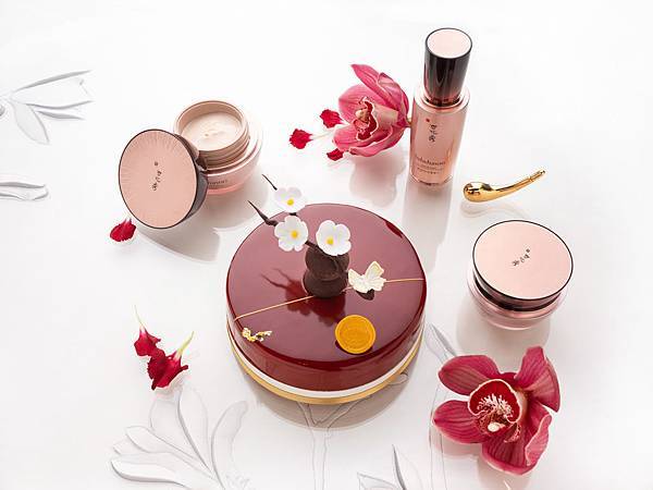 韓國頂級抗老保養品牌 - 雪花秀Sulwhasoo致力於追求全方位之美,結合亞洲數千年來已知的珍貴藥材及現代科學,提供全面肌膚保養對策。針對此次推出的「頂級賦活下午茶」,台北文華東方酒店行政西點主廚Hin(任樂軒)發揮巧思創意,以雪花秀品牌核心-養膚之道和經典成份,如人蔘、百合、蓮子等養生食材為靈感發想精彩演繹出一系列令人怦然心動的的夢幻精巧傑作,包括「茉莉草本慕斯」、「雪梅巧克力泡芙」、「菊花柚香餅」、「紅蜜梨香小點」以及「滋養人蔘蜜桃慕斯」等,由內而外細細勾勒出令人無法抗拒的風雅韻味,讓您盡享愜意午後時光!