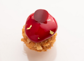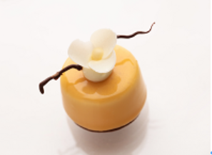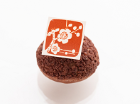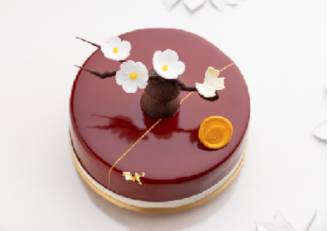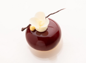外型高雅動人的這款美點,底層是巧克力沙布列酥餅,內餡則是杏仁蛋糕、柚子醬和菊花白巧克力慕斯組合而成,上方再飾以栩栩如生的蠟梅巧克力點綴,既好看又好吃!
