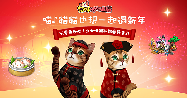 喵~今年過年也要和貓主子膩在一起!貓奴們動起來,農曆新年期間登入《LINE 貓咪咖啡廳》,貓主子就贈賞「貓咪小籠包」一份,讓你的貓咪新年吃飽飽睡滿滿~還不快來領賞?