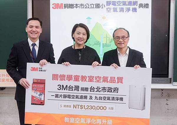 3M台灣董事總經理仝漢霖博士表示:「3M台灣在台深耕50年,與台灣一同經歷許多關鍵時刻,我們一直努力運用自身核心科技,為這片土地與人們盡一份心力,希望這次透過靜電濾網的捐贈為台北市的孩子在教室空氣淨化再升級。」