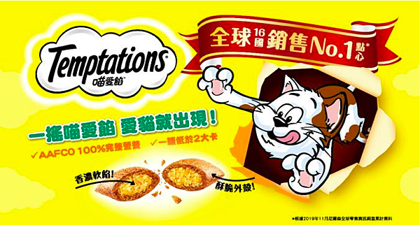 天下貓奴心,都希望貓咪吃的健康、更要吃的開心,除了每天必須奉上的乾乾、罐罐主餐,你們知道嗎?適度給予貓咪點心、增加飲食多元豐富度,更可幫助貓咪身心靈愉悅舒坦,全台貓奴們看過來,今年你一定要認識的新品牌、全球熱銷第一貓點心—Temptations™喵愛餡™正式登陸台灣!