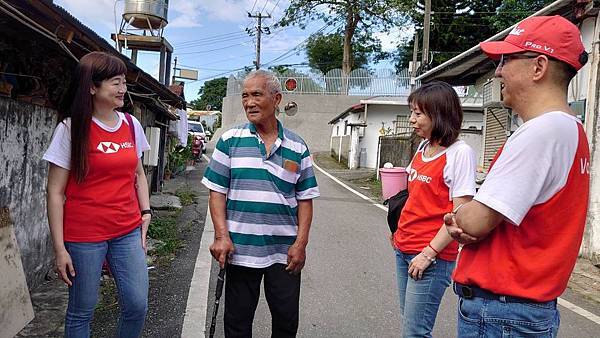 儀式圓滿結束後,陳志堅總經理與滙豐台灣主管們亦親自參與「社區關懷」的行程,在負責督導的陪同之下,實際拜訪與互動,將防疫物資包親手交至偏鄉長者手中。率先拜訪的個案是高齡七十九歲的陳先生,目前與一名智能障礙的女兒一同居住、領有低收入戶證明,平時除了自己之外更要注意女兒的狀況,因為經濟壓力目前租屋處是水泥鐵皮搭建的平房,且因罹患雙膝退化性關節炎、地中海貧血、C型肝炎,因此身體狀況不是很好,平時無法久坐久站或走太久,加上甚少有親戚、朋友過來拜訪幫忙,加上身體因素無法工作,面臨外出與經濟的雙重困境。平時很少人探望阿公,所以阿公非常健談,從往事談到對智能障礙女兒未來的憂心,匯豐同仁們也都耐心傾聽、寬慰。聊著聊著,陳阿公說想運動,陳志堅總經理就說:「一起走吧。」同仁們就陪伴陳阿公和女兒去散步,阿公說之前身體狀況不好,但現在已經可以出來走動,所以常去美崙山附近公園運動,匯豐同仁跟阿公一起走著都滿頭大汗了,但大家都十分開心,很祝福阿公現在還能行動,鼓勵阿公多多運動。