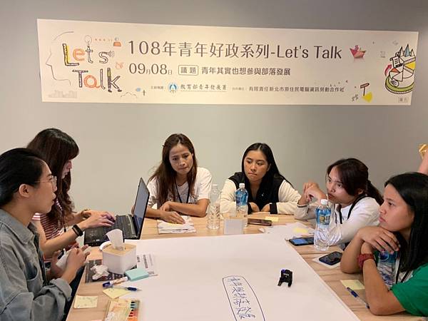 ▲108年「青年其實也想參與部落發展」Talk活動,由主持人帶領青年朋友以「審議民主」方式討論部落發展議題
