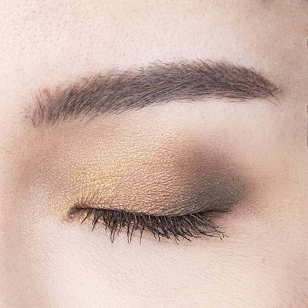 Step2. AQUA 24H 防水眼影筆#02 霧光棕-塗抹於眼尾 2/3 處”ㄑ"字區+下眼影 Step3. AQUA 24H 防水眼影筆#09 香檳金-塗抹於臥蠶處