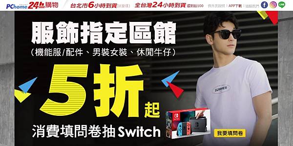 PChome 24h購物【服飾指定區館消費填問卷抽Switch】