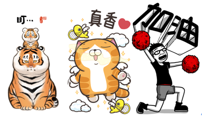 全新LINE原創大貼圖輕鬆滿足任何聊天情境及聊天對象,不管是年輕族群惡作劇展現個人風格,或是情緒滿點浮誇超搶戲,連長輩喜歡超大圖文的需求都照顧到。LINE自2018聖誕節推出官方大貼圖,應景慶賀畫面引起用戶喜愛,今年夏天推出全新原創大貼圖,為聊天室增添更多趣味,首波推出的全新原創大貼圖包含: