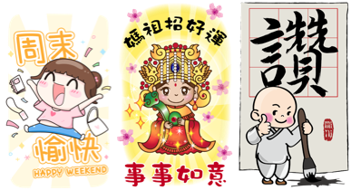 好有禮貌長輩系:長輩圖再進化,精緻貼圖作品成長輩新寵!包括有朝氣實用的日常問候語句魚仔的作品,還是保佑平安、健康、招財「Amy媽祖」跟「小沙彌」系列皆深受長輩喜愛。今年夏天就用大貼圖孝敬長輩吧!