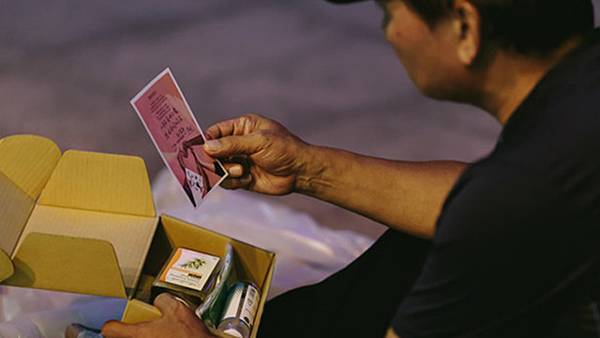 出發前,將春風抗菌洗手慕斯、袖珍包面紙、抗菌噴霧、口罩、鼓勵卡片……等,一樣一樣仔細清點、裝箱,網友們的鼓勵留言,也藉由工作人員親手一筆一畫寫上,並一盒一盒將正能量傳遞出去,小小的盒子裡面乘載了滿滿的心意,而他們在接受到這樣溫柔的鼓勵之後也露出了笑容,並開始侃侃而談,與工作人員分享自己的故事,這些難得展露的笑容,讓人看見溫柔相伴的力量。