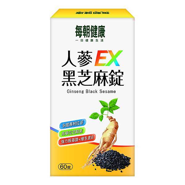 「每朝健康 人蔘黑芝麻錠EX」精選高單位芝麻素及榮獲24項專利的韓國人參、有助於維持正常代謝的維生素B1、B2、精胺酸等。一天一顆,調整體質、滋補強身、增強體力。面對繁重工作與壓力,「每朝健康 人蔘黑芝麻錠EX」一次幫你顧好元氣與精力,並且能增加保護力,讓你每天自信滿滿,活力充沛面對挑戰。