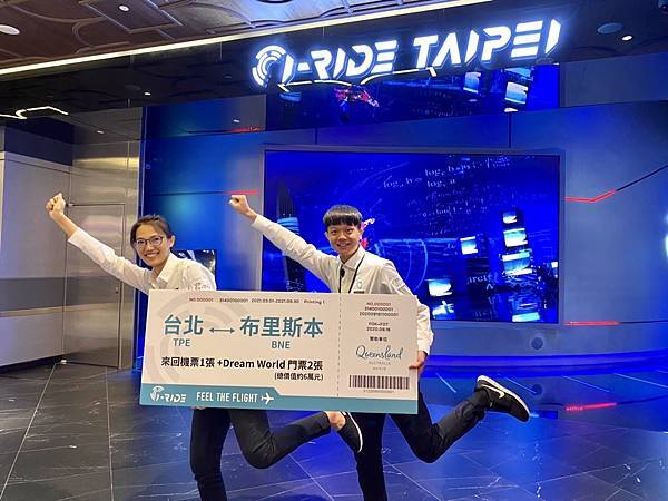 想參加i-Ride與澳大利亞昆士蘭州旅遊及活動推廣局所合作推出的抽機票活動,只要在活動期間,至i-Ride TAIPEI或i-Ride KAOHSIUNG任一航點購票觀看《飛越澳洲》且保留票根,同時與現場澳洲相關佈置物或指定澳洲道具合照,上傳至i-Ride TAIPEI粉絲專頁活動貼文下方並完成指定步驟,即有機會抽中2021年出發的「台北-澳洲布里斯本來回機票及黃金海岸Dream World夢幻世界門票」,共有兩位幸運兒可獲此大獎!不僅如此,i-Ride更加碼抽出Just Sleep捷絲旅住宿券、餐券及陽明山水溫泉會館風呂券等多項好禮,讓參與的遊客不僅可以來i-Ride先飛一次,明年還有機會真正的「飛越澳洲」!
