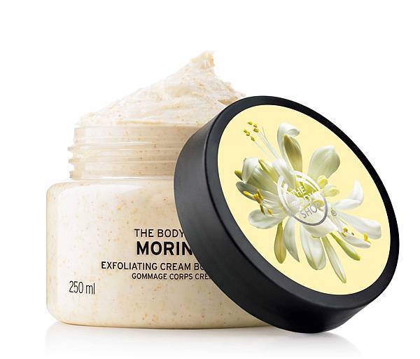 含辣木果實顆粒、蓮子顆粒、胡桃殼、椰子殼顆粒及天然米糠,可溫和去除身體老廢角質,另含辣木籽油、有機蜂蜜、巴西核果油、芝麻籽油等成份,使用後肌膚柔潤細緻、滑嫩,並散發清新嬌嫩的辣木花香。