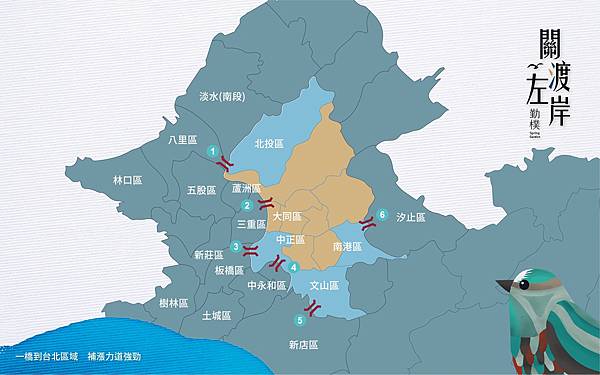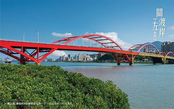 自台北市區開車約20分鐘,經過關渡大橋,緊繃的情緒立刻得到放鬆。水岸綠意、樂活自行車道、龍形岸邊等多座公園,打造出台北市後花園的優閒氛圍。