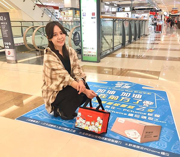 全方位擴大客群,PChome 24h購物透過實體商場資源發揮強大聚客力,同時於Global Mall新北中和館內以PChome專屬紙箱打造獨特的裝置藝術,造型吸睛成為消費者爭相拍照的打卡熱點,即日起~11/15與館內任一PChome紙箱拍照打卡,即可免費獲得baan泰式雪糕,更設計有趣的小遊戲與消費者互動,搭配社群推廣進行品牌擴散,加碼祭出萬元驚喜抽獎活動,11/1~11/15於館內完成尋寶地貼指定任務,即有機會獲得最高Global Mall 1萬元禮券;11/1~11/15至PChome限定櫃位不限金額消費,即可抽最高Global Mall 1萬元禮券,以霸氣好禮回饋消費者,持續延燒話題熱潮!