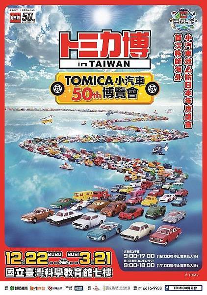 首次移師海外的「TOMICA 博覽會」,將自 12 月 22 日起至明年 3 月 21 日,於士林科教館盛大 展出,活動內容原汁原味引進日本「TOMICA 博」的園遊會攤位;限量一萬套的預售小汽車套票,於 11 月 2 日開賣,僅僅一週即宣告銷售一空!