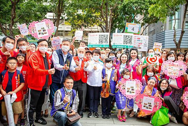 (2020/11/17) 由台新銀行公益慈善基金會主辦第11屆「您的一票,決定愛的力量」網路公益票選活動,11/1(日)中午12點起開放投票,全台快閃每周末熱鬧登場,上周末11/14(六)於台中勤美商圈、11/15(日)於鹿港天后宮連番舉辦,現場集結台新銀行志工及社福團體遊街宣傳,鼓勵民眾投票做公益,凡投滿10票,現場除有機會領取「愛的力量」紀念版愛心口罩外,還能抽台灣知名飯店住宿券。