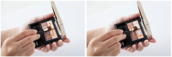 除了典雅亦能俏麗!est「深邃明眸眼影盤」一盤引出雙重氣息!est為追求典雅之美也想展現活潑俏麗的女性設計,僅需簡單以不同順序向右而下或自左向下,為雙眸疊擦上色,神情立現、風格即變。